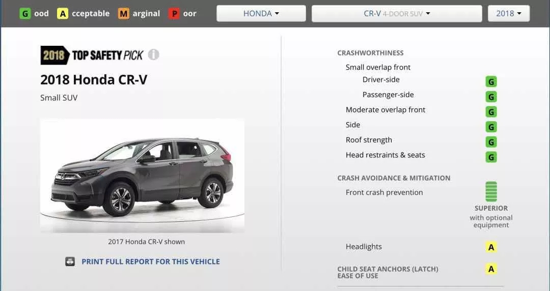 在IIHS (美國公路安全保險(xiǎn)協(xié)會(huì), 世界汽車安全標(biāo)準(zhǔn)的重要組成部分)的評選中, CR-V在各項(xiàng)安全都獲得了TOP SAFETY PICK+也就是最安全推薦的評分。